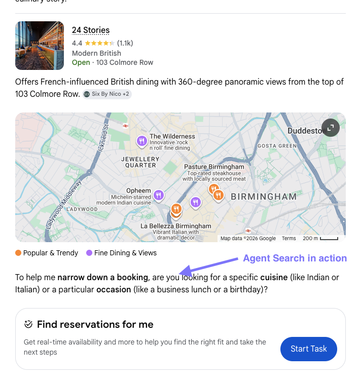 The example above shows the current AI Mode on Google search, already starting to implement future plans. Moving into a task manager rather than a search. Helping with all the finer details.